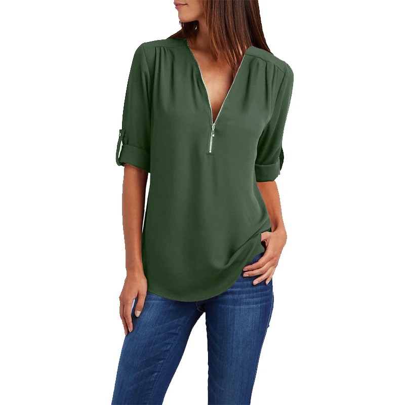Best Plus Size 5XL Summer Women Chiffon Blouse Casual Zipper V-neck Half-sleeved Loose Tee Shirt Women 1