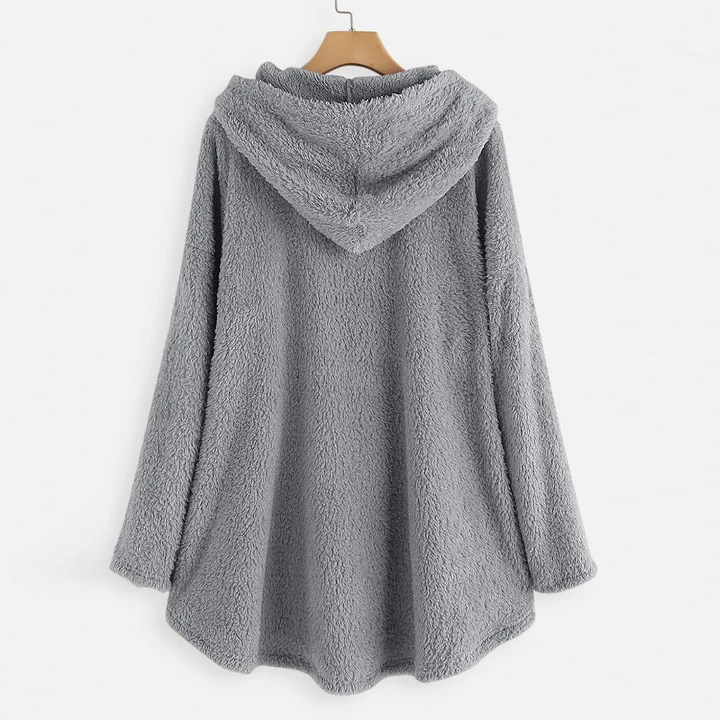 New Plus Size Hoodies Womens Fleece Cat Embroidery Warm Hoodie Top Button Autumn Winter Size Long Sleev