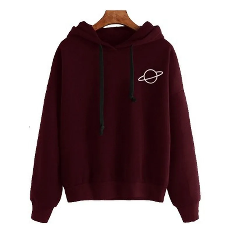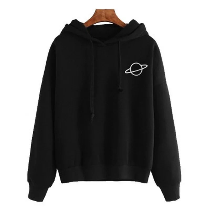 Best Women Hoodies Planet Print Casual Solid Loose Drawstring Sweatshirt Fashion Long Sleeve Hooded 2019