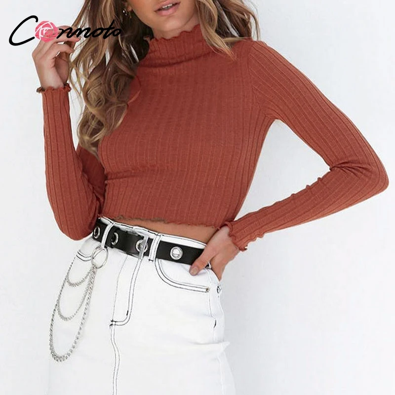Today i want to review about Conmoto Crop Basic Ribbed Turtleneck Sweater Women Pullover Femme Sexy Flounce Sleeve 2019 Autumn W. I uncover this cool product from China Online Store, best manucafturer.