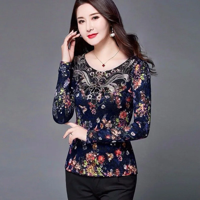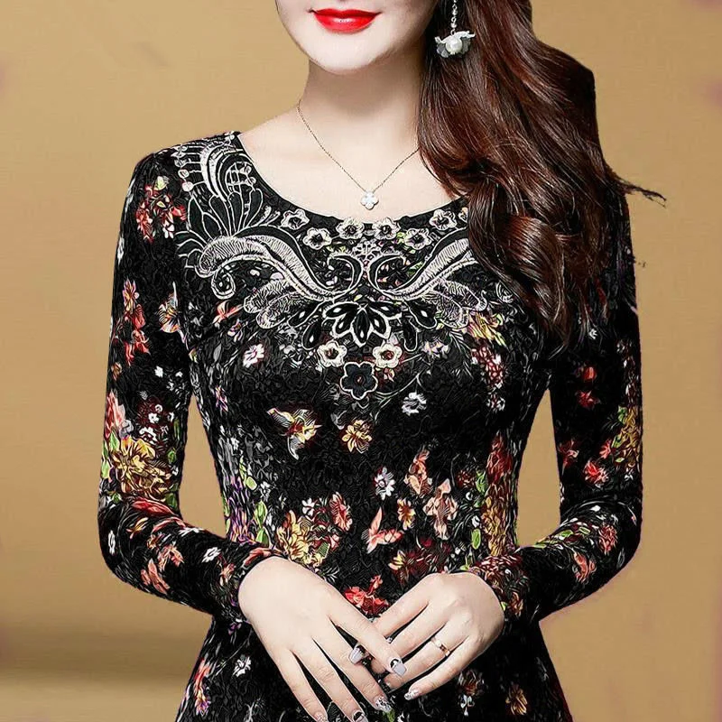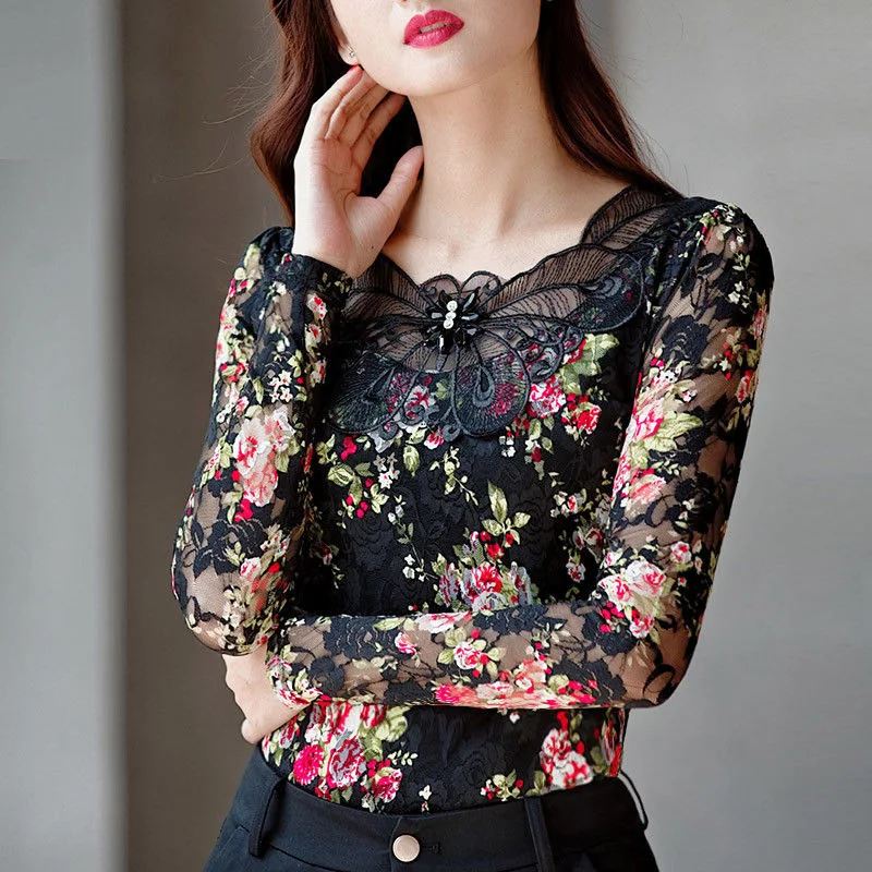 Promo Hollow Out Women Spring Autumn Style Lace Blouses Shirts Casual Long Sleeve Patchwork Spliced Turtl
