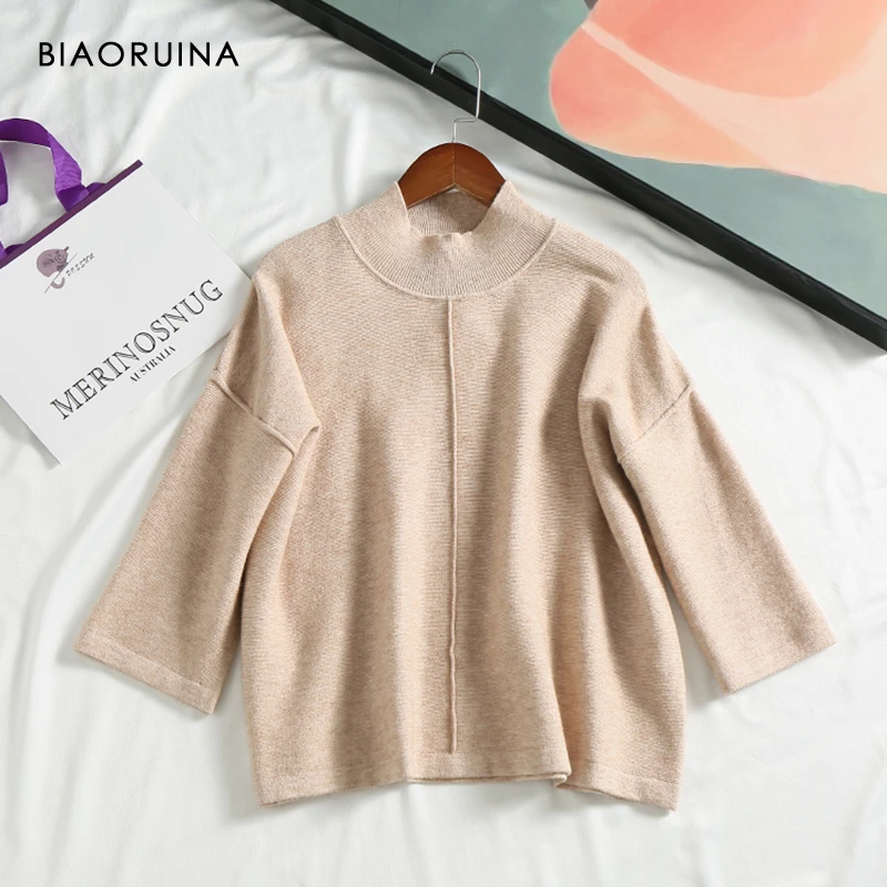 If you search this product, i propose you to take this excelent and best products. I hope BIAORUINA 3 Color Women's Turtleneck Elegant Wool Blends Sweater Three Quarter Sleeve Female Loose suitable for your needs.