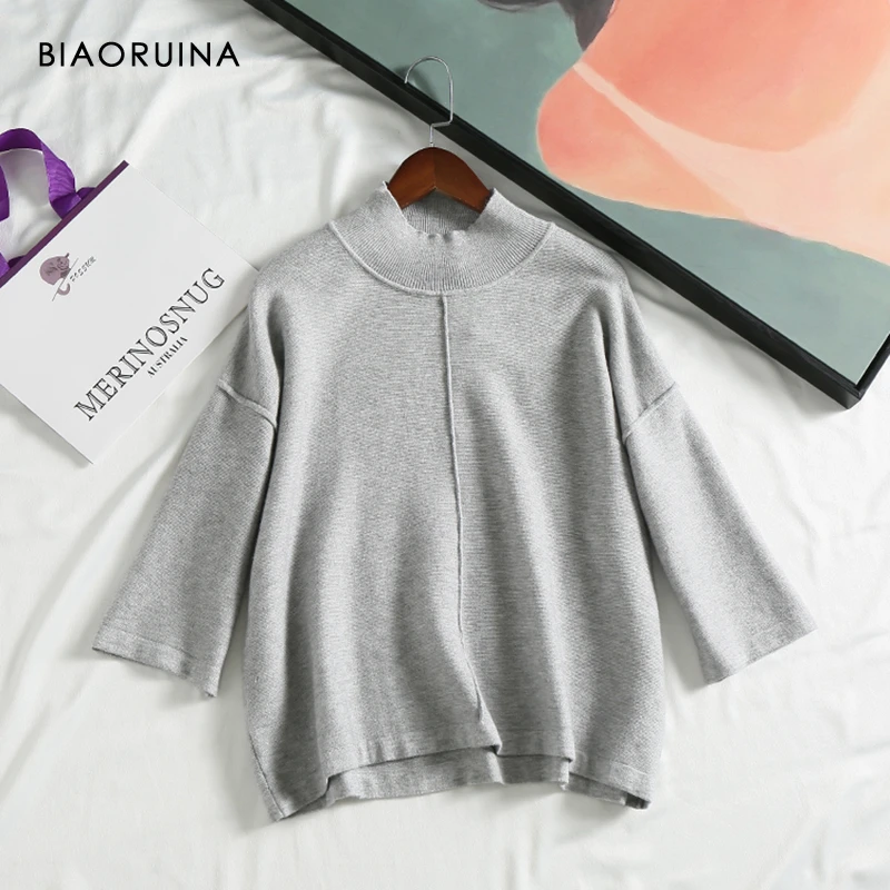 Today i want to review about BIAORUINA 3 Color Women's Turtleneck Elegant Wool Blends Sweater Three Quarter Sleeve Female Loose . I uncover this cool product from China Online Store, best manucafturer.