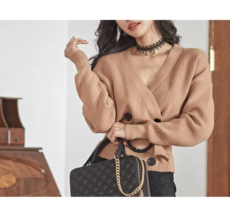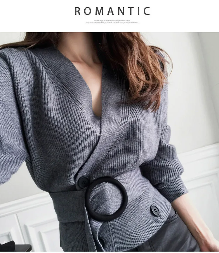 Promo 2019 Autumn And Winter Women Cardigans Sweater V neck Solid Loose Knitwear Double-breasted Casual K