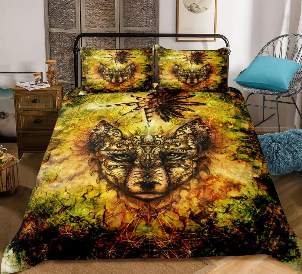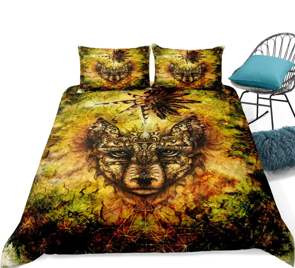 Best 3pcs Retro Wolf Bedding set Duvet cover set Teen Boho Animals Totems Bedclothes King size Dropship
