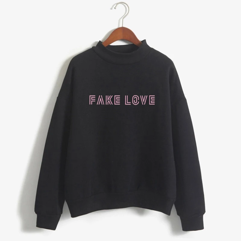 Buy New Arrival K-Pop Print Hoodie Kpop Album Fake Love Sweatshirt Women Harajuku Fans Turtleneck Caple