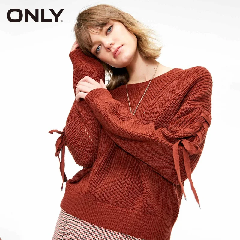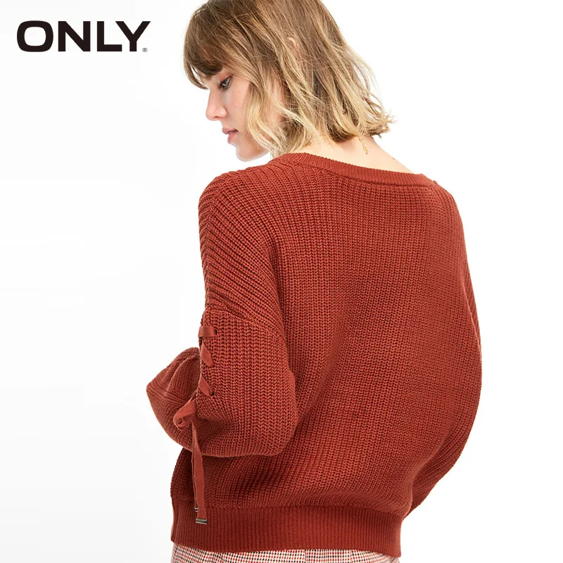 Buy ONLY Women's Lace-up Round Neckline Loose Fit Pullover turtleneck sweater 119124521