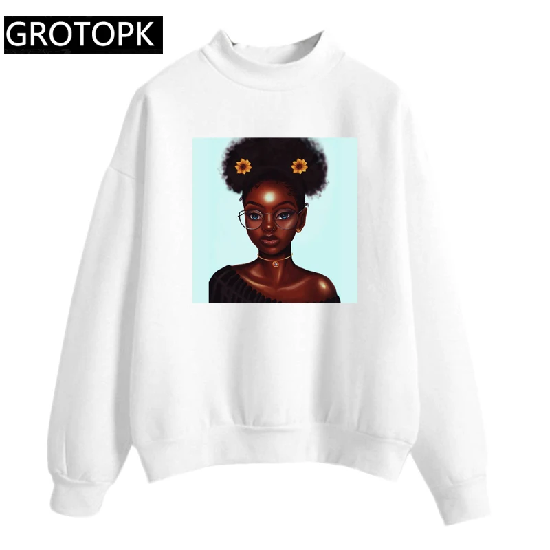New 2 Bunz Melanin Poppin Aba Print Women Hoodies Black Girl Magic Rock Hip Hop Streetwear Women's Swea
