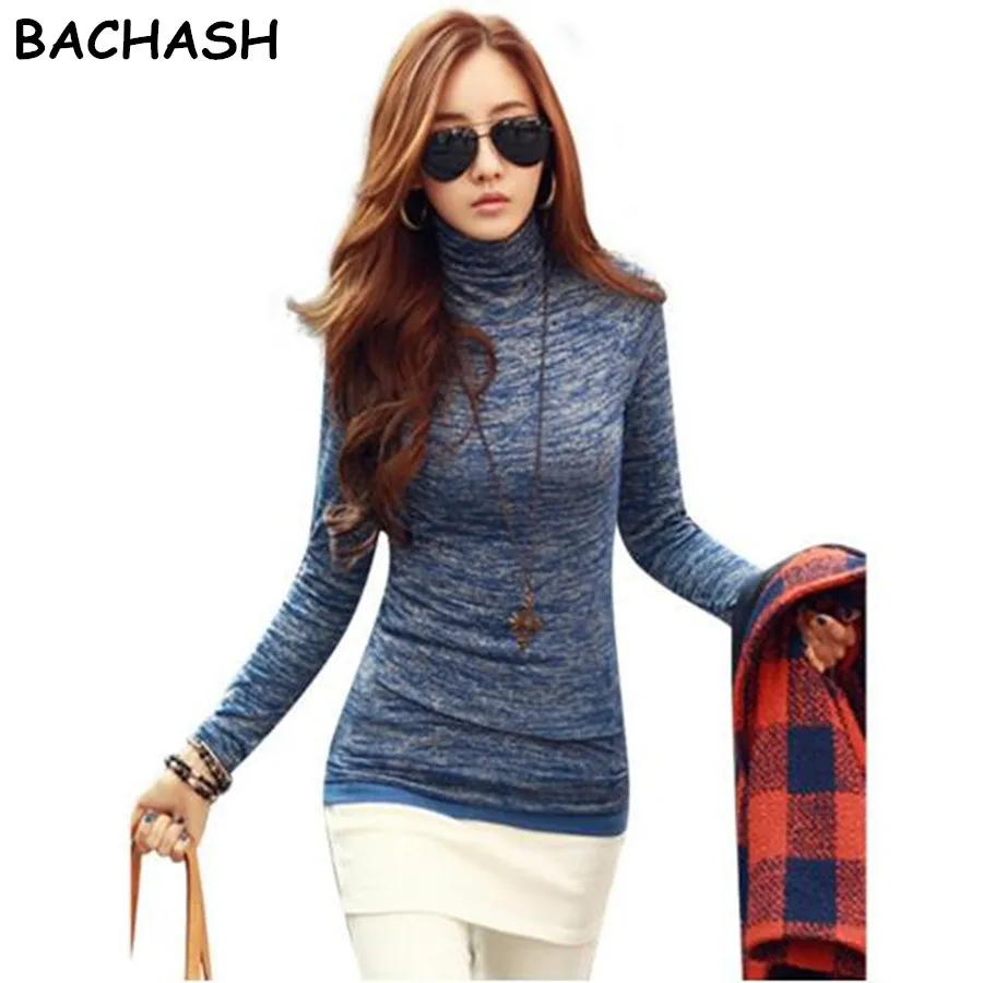 New BACHASH Women Casual Knitted Pullover Turtleneck Sweaters Fashion High Neck Long Sleeve Slim Fit Ju