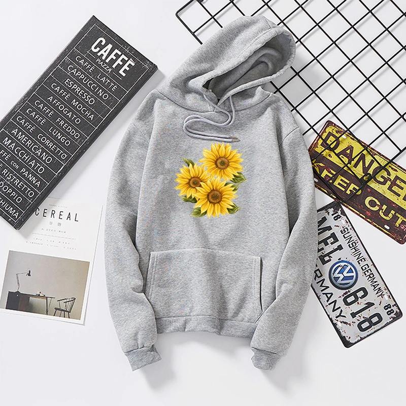 New Hoodies Sweatshirt Women Harajuku Streetwear Sunflower Print Hoodie Winter Women Fashion Clothes Ka