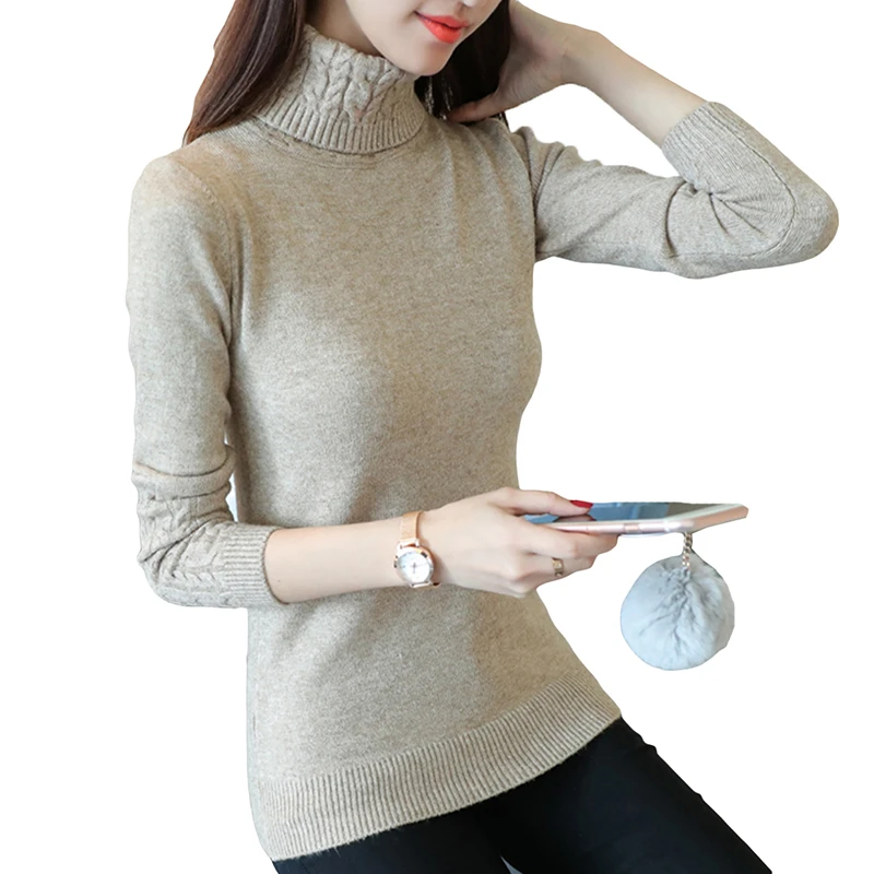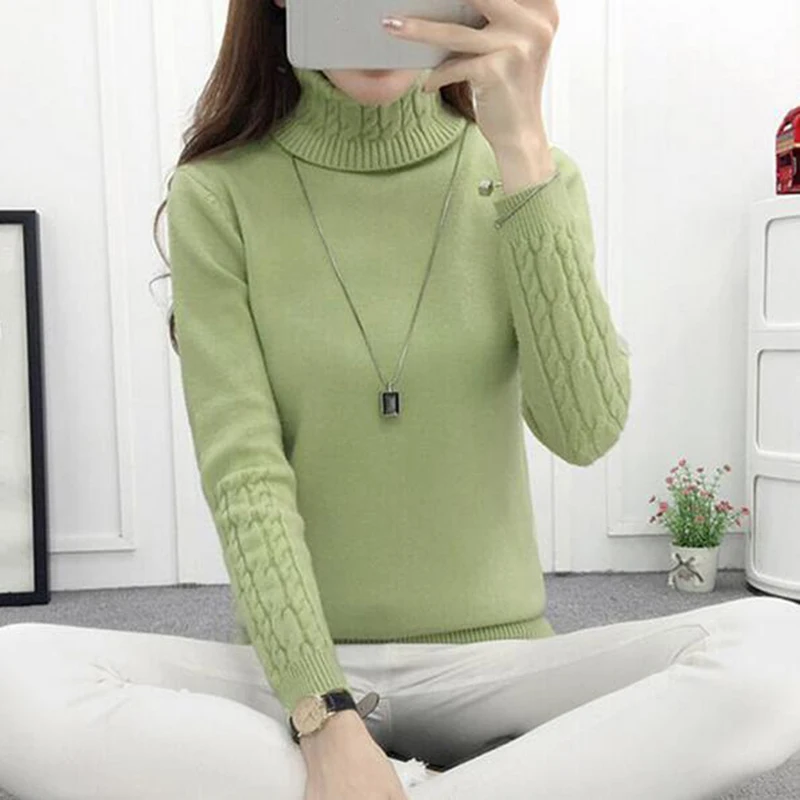 New New Women Knitted Autumn Winter Sweater Women Long Sleeve Thick Turtleneck Sweaters Pullovers Femal
