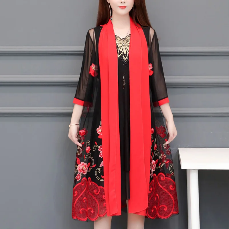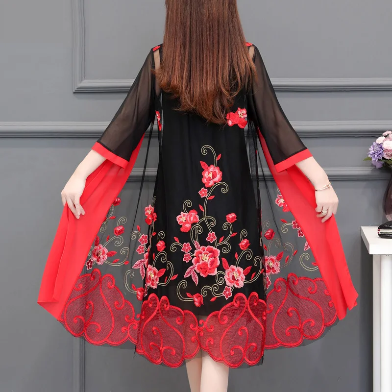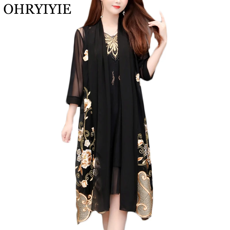 Promo OHRYIYIE Plus Size 5XL Long Cardigan Sweater Women Poncho 2019 Spring Summer Vintage Embroidery Kni