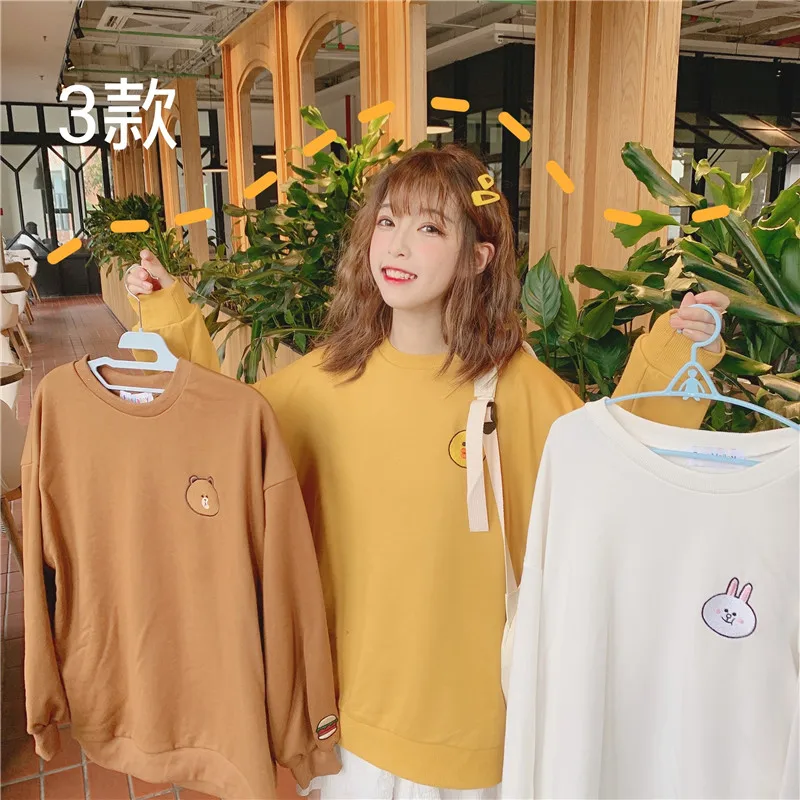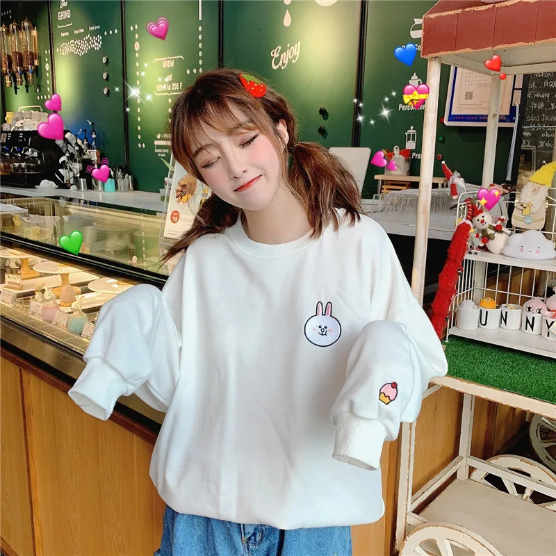 Promo Women Harajuku Hoodies Kawaii Cartoon Rabbit Brown Bear Embroidery Kpop Oversized Sweatshirt Korean